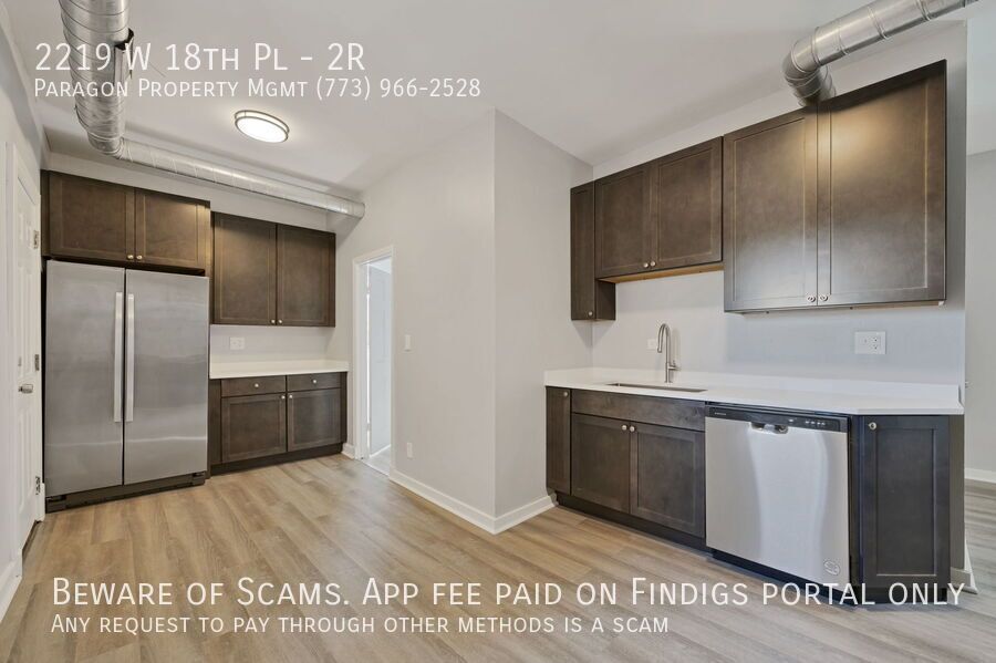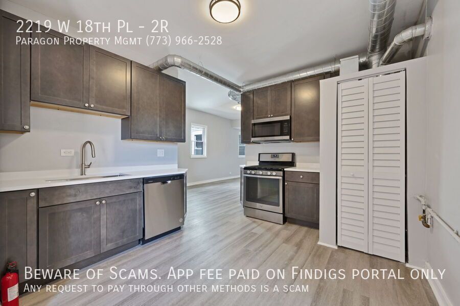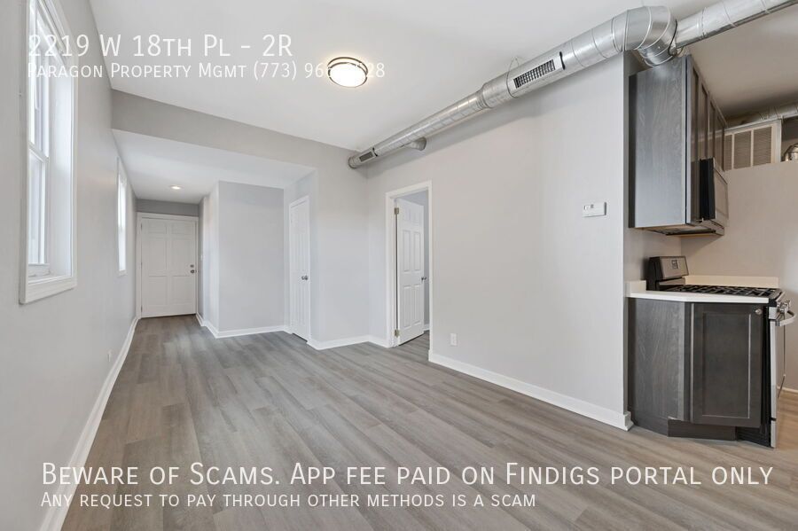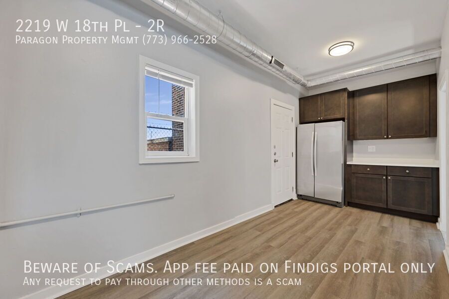 Newly rehabbed 2-bed unit located in the city's Heart of Chicago neighborhood. This unit features vinyl flooring all through out, stainless steel appliances, central A/C, and forced gas heating. There is also an exterior parking space available for an additional monthly fee. Great location just 2 blocks south of the popular 18th St. which is filled with trendy shops, restaurants, and bars. Also less than half a mile away from the beautiful Harrison Park. Walk 3 blocks west for the Western Metra or less than half a mile south to get to the Western CTA Pink Line.